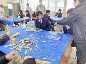 今回は9月に収穫した葉を用いて正月用のしめ縄づくりを行いました。しめ縄の作り方を教わりながら見事なしめ縄を完成させることができました。