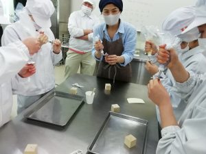 2月1日(月)本校にて製菓技術を習得する講習会を開催しました。社会人講師として長浜市でカフェ(カフェとオーダーケーキのお店 トロン)を経営されてる佐藤幹子さんをお招きし、白あんを使ったアートフラワーケーキの製造をしました。普段、絞り出しクッキーを作っている製菓製パンの生徒でも、思うように白あんが絞れずに苦労していました。最後は自分の納得のいくフラワーケーキが出来上がり、お菓子作りの魅力を再確認できました。貴重な体験をありがとうございました。