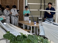 米原市にある七夕いちご園へ園芸科野菜分野が見学に行きました。七夕いちご園でしか栽培していない品種などがあり、日頃の学習を深めることができました。また、イチゴのブランド化を図るために取組まれていることなど、農業経営についても講話していただき有意義な一日となりました。