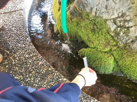 園芸科野菜分野では環境に優しい農業について学んでいます。その一環として湧き水から琵琶湖の水について調査しました。湧き水から琵琶湖に流れるまでの過程で水が汚れている状況を知ることができ、これからも環境を意識した農業を実践し取り組んでいきます。