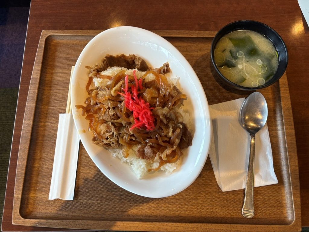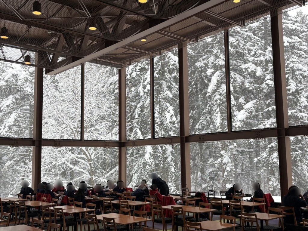 スキー班の活動です。昼食休憩をとり、牛丼を食べました。