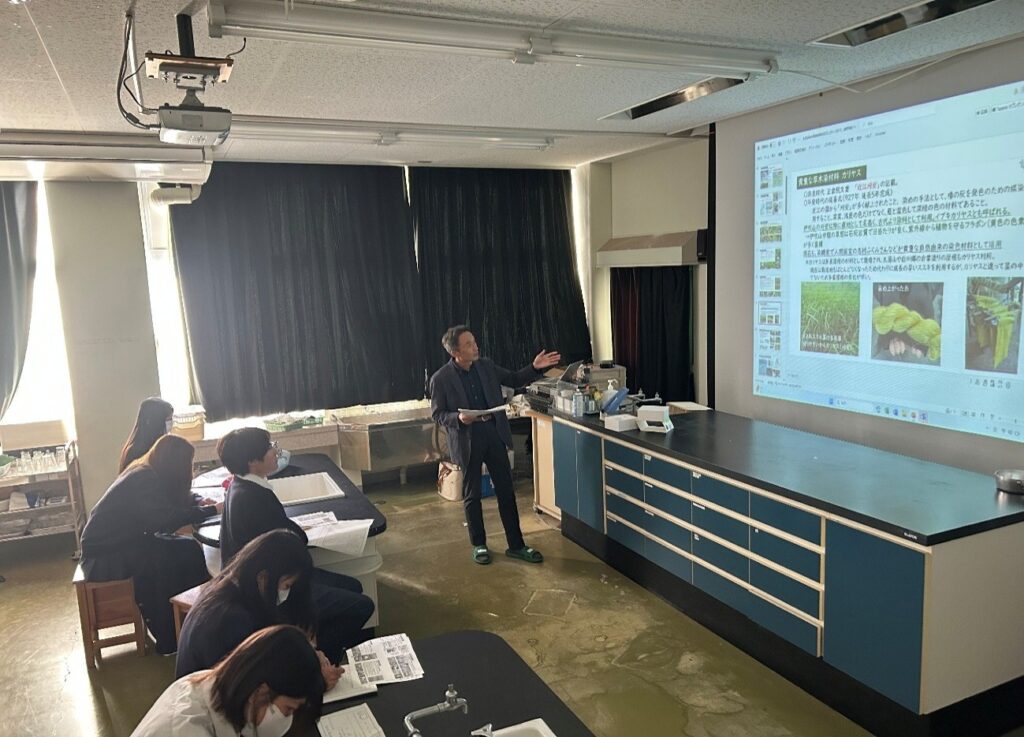 令和7年11月4日(火)食品科2年生農産物利用分野では課題研究の時間に、NPO法人霊峰伊吹山の会、高橋滝治郎さんにお越しいただき、伊吹山の保全に関わる講義をして頂きました。伊吹山の歴史や、自然豊かな生態系について、数年前の伊吹山麓の土砂崩れの原因には鹿の増加が関係していることを学ぶことができました。捕獲された鹿肉はあまり利用されず、廃棄されることも併せて学ぶことができました。