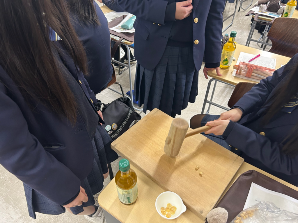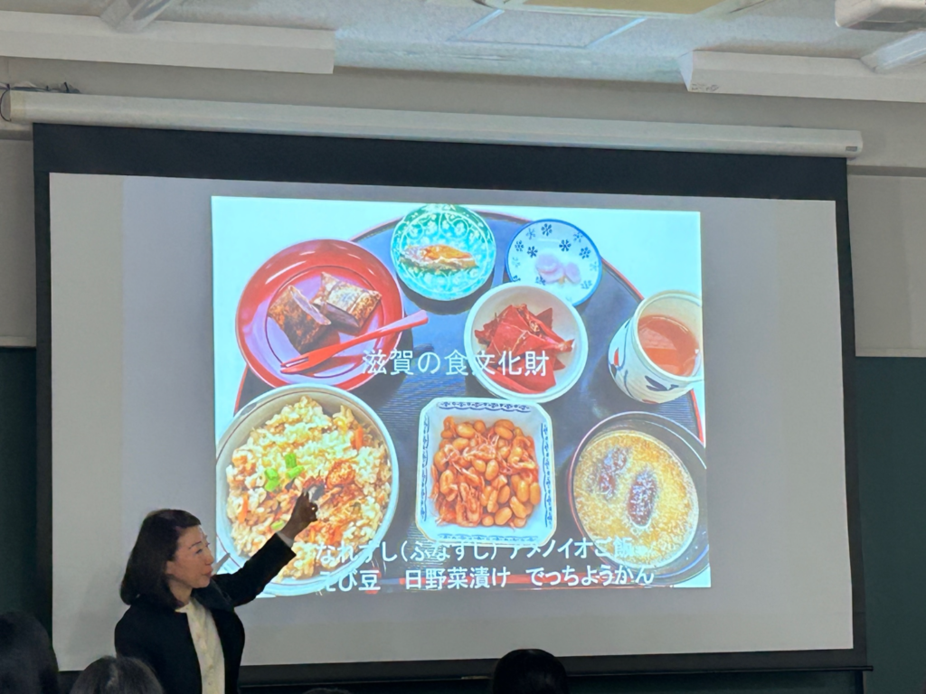 2月10日(火)に食品科2年生を対象に、関連企業及び進学先への校外学習を行いました。滋賀短期大学では「滋賀の食文化」というテーマで生活学科、中平真由巳教授に授業を行っていただき、滋賀の郷土料理や打ち豆の体験などをさせて頂きました。生徒の感想には「小中の給食で食べた打ち豆の形の意味が分かった」「滋賀の食文化を知れてよかった」「おもしろくて興味が湧いた」などの感想がありました。