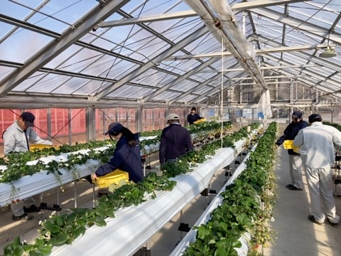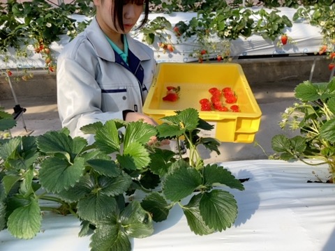 野菜分野で栽培しているイチゴを収穫し、試食を行いました。それぞれの品種により特徴があり、品種を食べ比べることでわかることが多くありました。